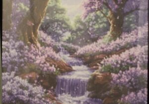Cascada con arboles violetas